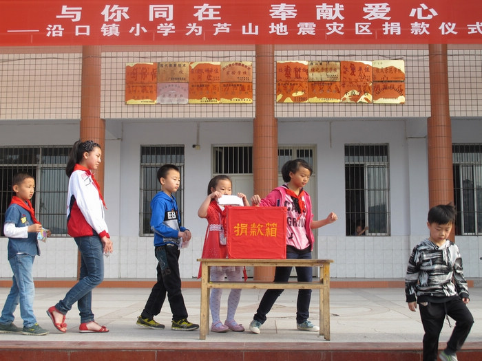 2013年4月20日8时2分,四川雅安市芦山县发生7.0级特大地震,再一次触动了中国人的痛楚记忆。灾区人民的生活情况时刻牵动着沿口镇小学2000余名师生的心,4月27日上午,沿口镇小学在操场举行了“与你同在、奉献爱心”为主题的向芦山地震灾区捐款活动。