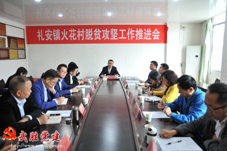 会议听取了火花村第一书记李安顺汇报火花村脱贫攻坚工作开展情况和礼安镇党委书记朱涛汇报脱贫攻坚取得成绩及存在问题和下步打算。相关帮扶单位负责人也分别针对目前脱贫攻坚工作进度和存在的问题进行了交流发言。