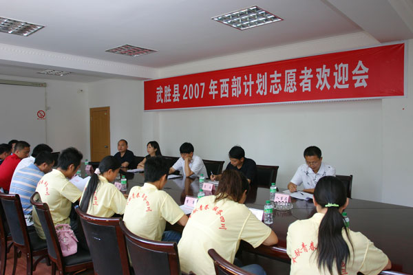 继去年实施大学生服务西部计划以来,7月26日,武胜县举行隆重的欢迎仪式喜迎第二批大学生西部计划志愿者,此次志愿者共有5名,明日便将奔赴飞龙、万隆、猛山、万善、鼓匠五个乡镇并担任乡镇的团委副书记。这5名西部计划志愿者的工作主题依然是“关爱留守儿童”。他们的签约时间是一年。 (陈曾)