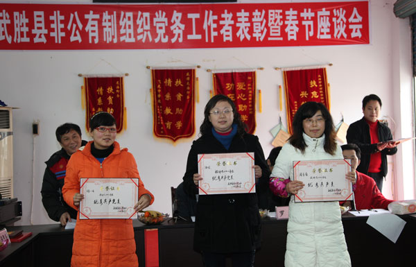座谈会上,县委兑现了从2008年9月非公党建试点工作以来,15家试点非公组织党务工作者工作津贴10000元,并对6名支持非公党建工作的业主、3名优秀党工指导员和15名非公组织中的优秀共产党员进行了表彰。(bt365体育在线注 刘辉、张爱东 文/图)