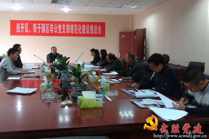 10月22日,武胜县经开区、街子工业园区组织银钢一通、四通印务等10个非公企业党组织书记联合召开了非公企业党支部规范化建设推进会。会议传达了全市“两新”组织党组织书记示范培训会精神,并对经开区、街子园区今年来的非公党建进行了分析总结,对下阶段工作进行了安排部署。