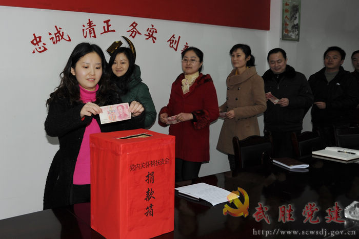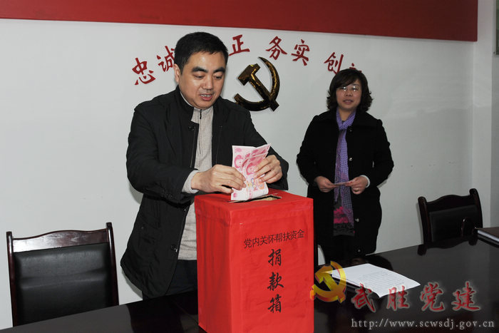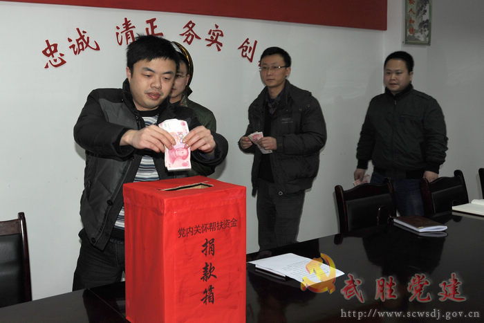 2月13日下午,武胜县委组织部在部会议室为“党内关怀帮扶”举行现场捐款活动,全体干部职工参加了现场捐款,纷纷献出自己的一片爱心,捐款额达3800元。