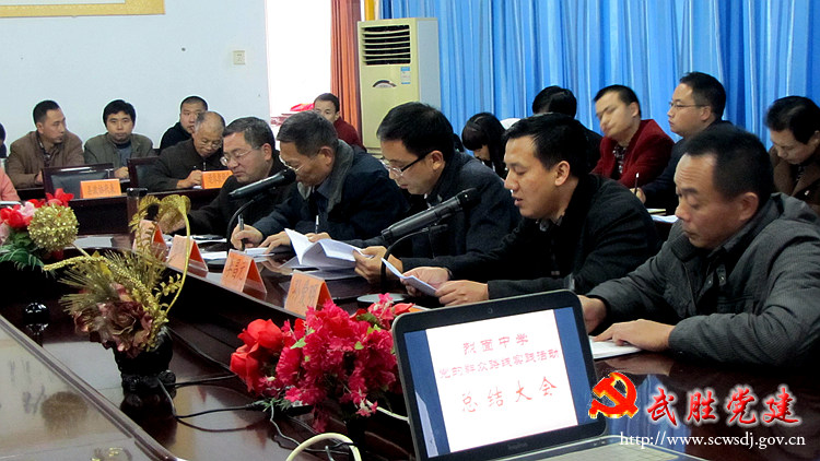 11月19日下午4:30,武胜县教育局党委第二督导组组长、教育局副局长李昌元等一行四人,在烈面中学三楼会议室参加了该校党总支召开的“党的群众路线教育实践活动”总结大会。会议由副校长胡泽献主持,学校60多名党员以及人大政协代表、退休教师代表、家长代表参加了大会,烈面中学党总支书记孙爱明作总结报告。